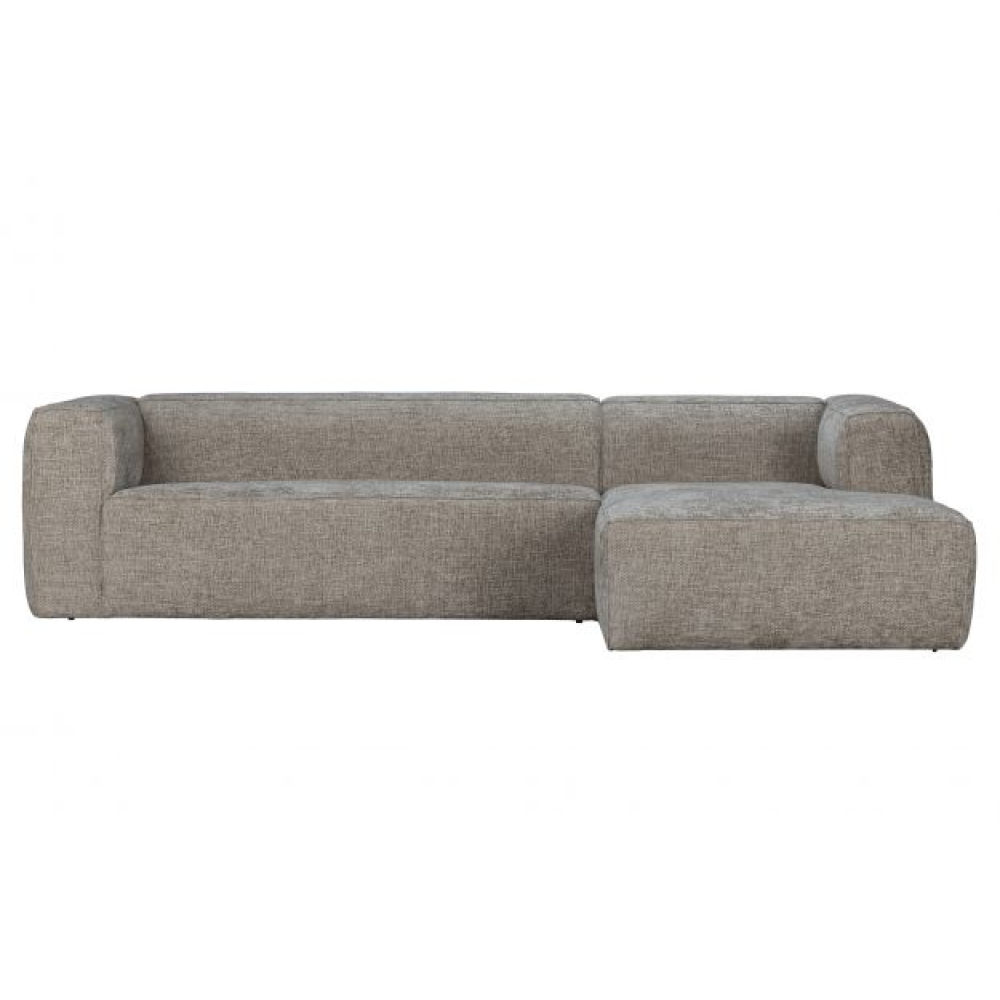 De Bean hoekbank rechts in grove melange stof travertin is dé perfecte bank voor wie houdt van comfort en stijl in één. De neutrale travertin kleur in combinatie met de grove melange stof geeft deze royale hoekbank een stoere, eigentijdse uitstraling die in vrijwel elk interieur past.