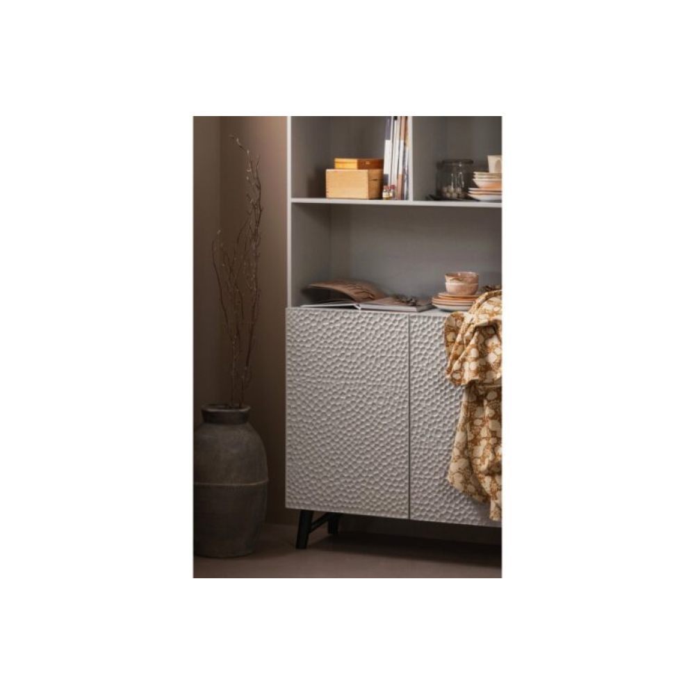 De WOOOD Carved Organic 2-Deurs Opbergkast Mist is een echte blikvanger in je interieur. Deze stijlvolle kast is uitgevoerd in een zachte, mistgrijze kleur en valt direct op door de prachtig organisch gevormde reliëfpatronen op de deuren. Het speelse lijnenspel geeft de kast een moderne, artistieke uitstraling en maakt elk exemplaar uniek.