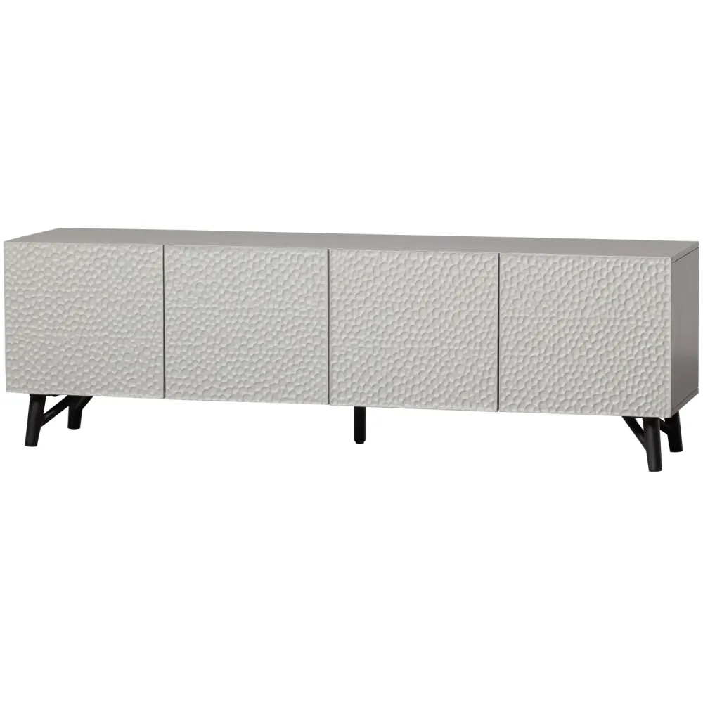 Dankzij de combinatie van strak design, speelse patronen en een neutrale tint past dit tv-meubel perfect in zowel een modern, Scandinavisch als artistiek interieur.