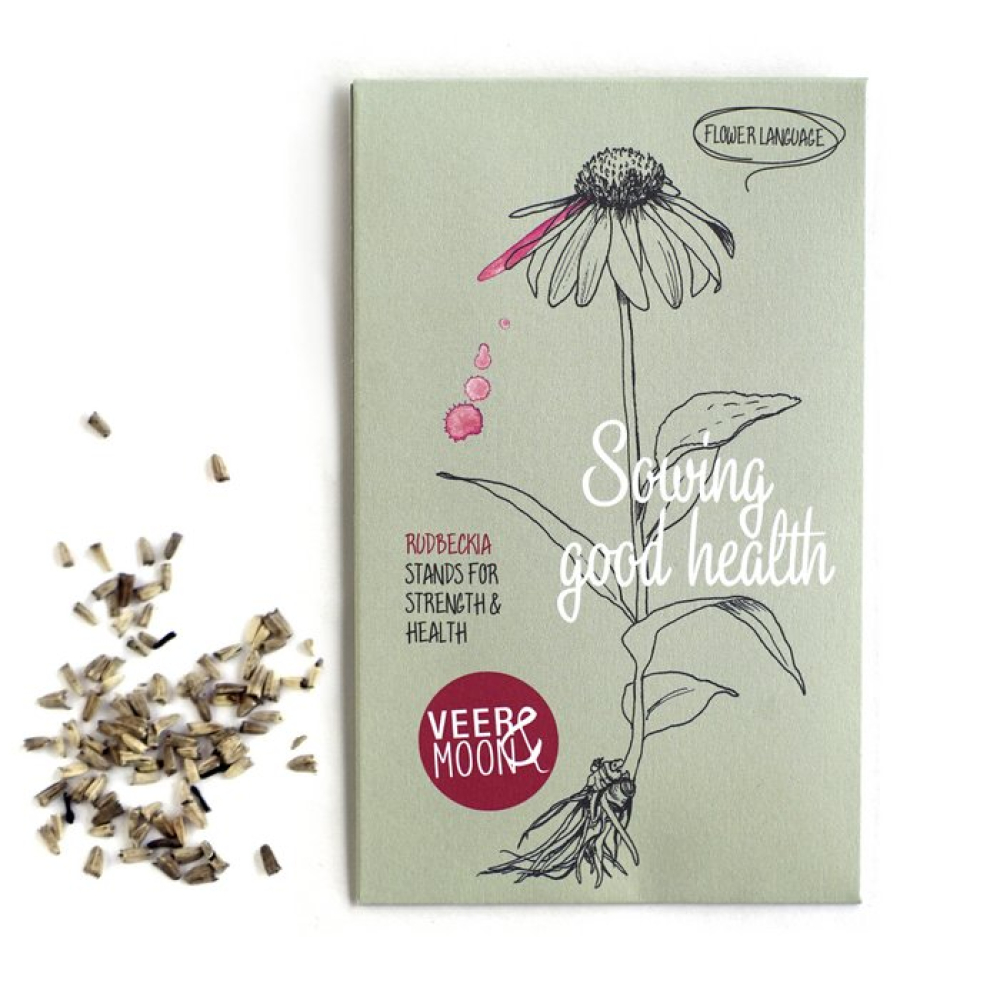 Bloemzaadpakket 'Good Health', Rudbeckia (echinacea), met de mogelijkheid om de naam van de ontvanger en afzender op de achterkant van het pakket te schrijven.