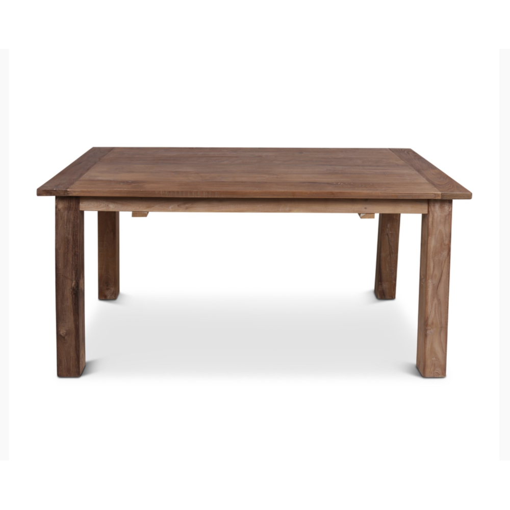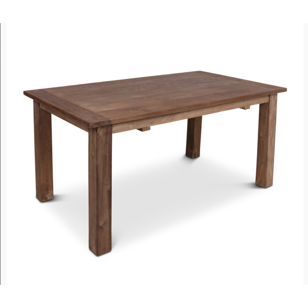 Deze prachtige tijdloze eettafel van onbehandeld teakhout is een echte blijver.