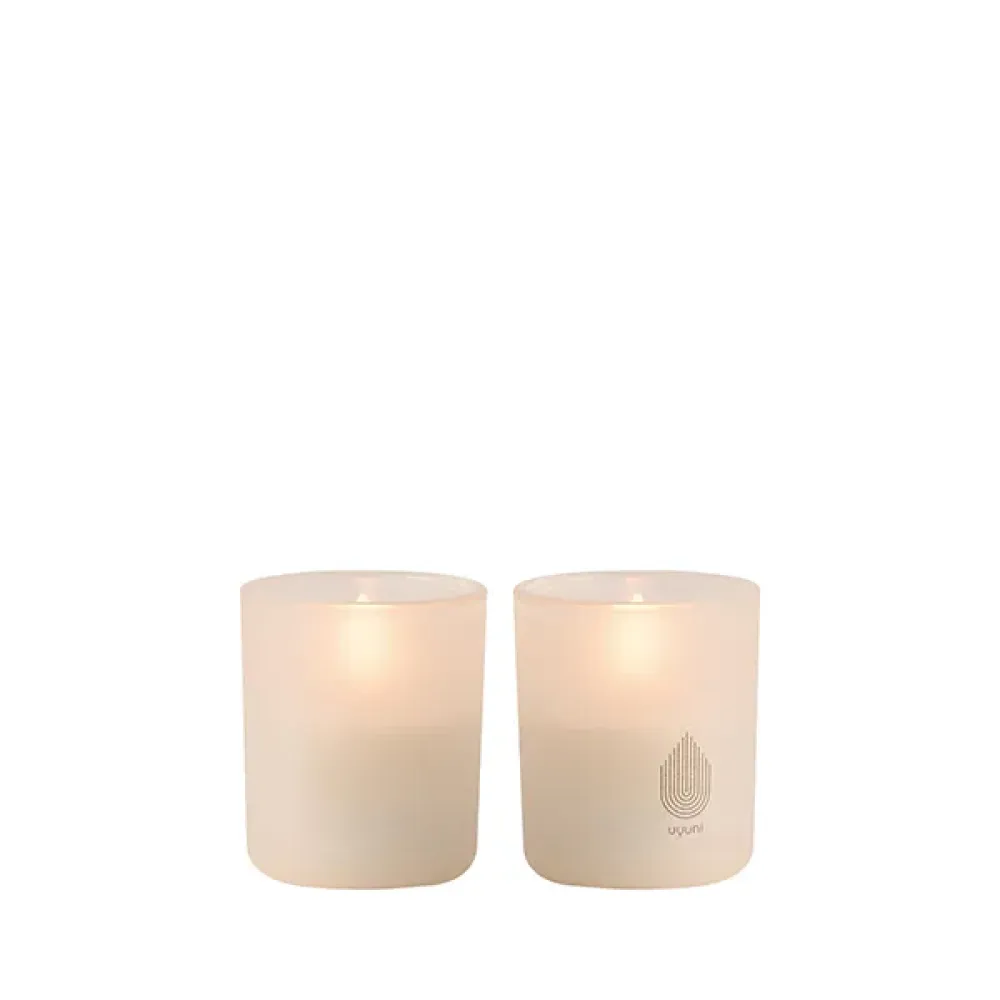 De nieuwe Glass Candle is verkrijgbaar in verschillende natuurlijke kleuren.