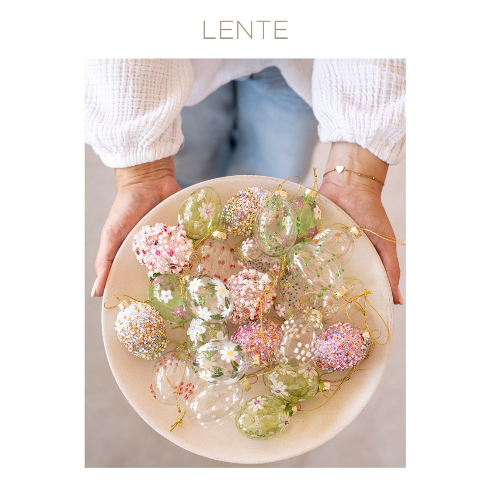 Deze leuke glazen paasdecoratie in verschillende kleurtjes maken je paastakken super vrolijk.