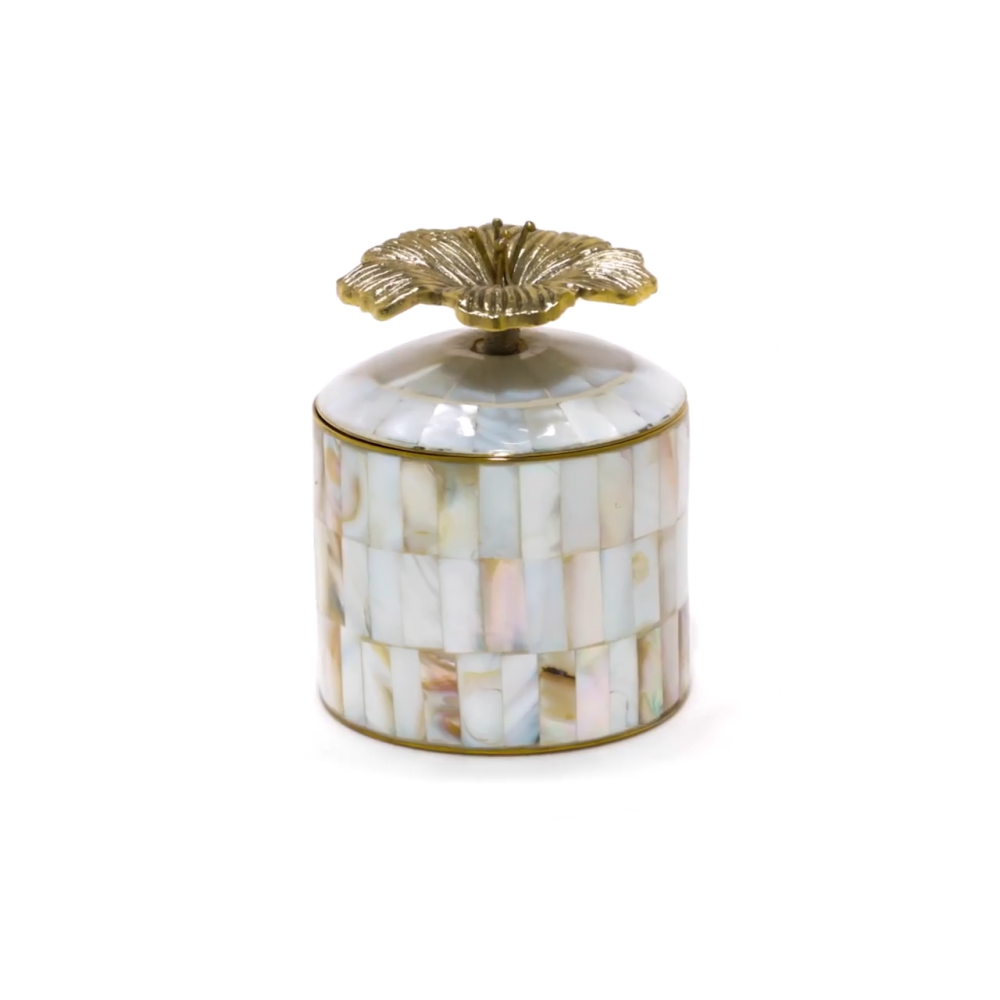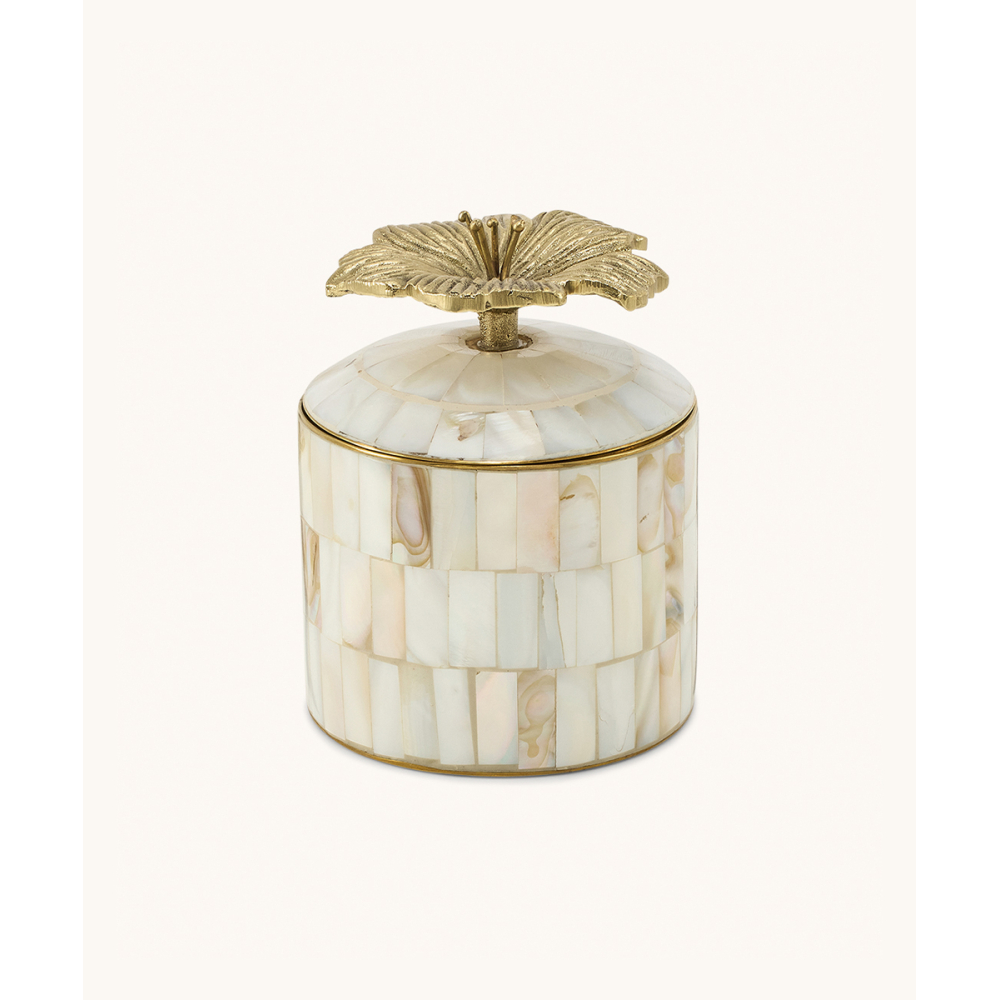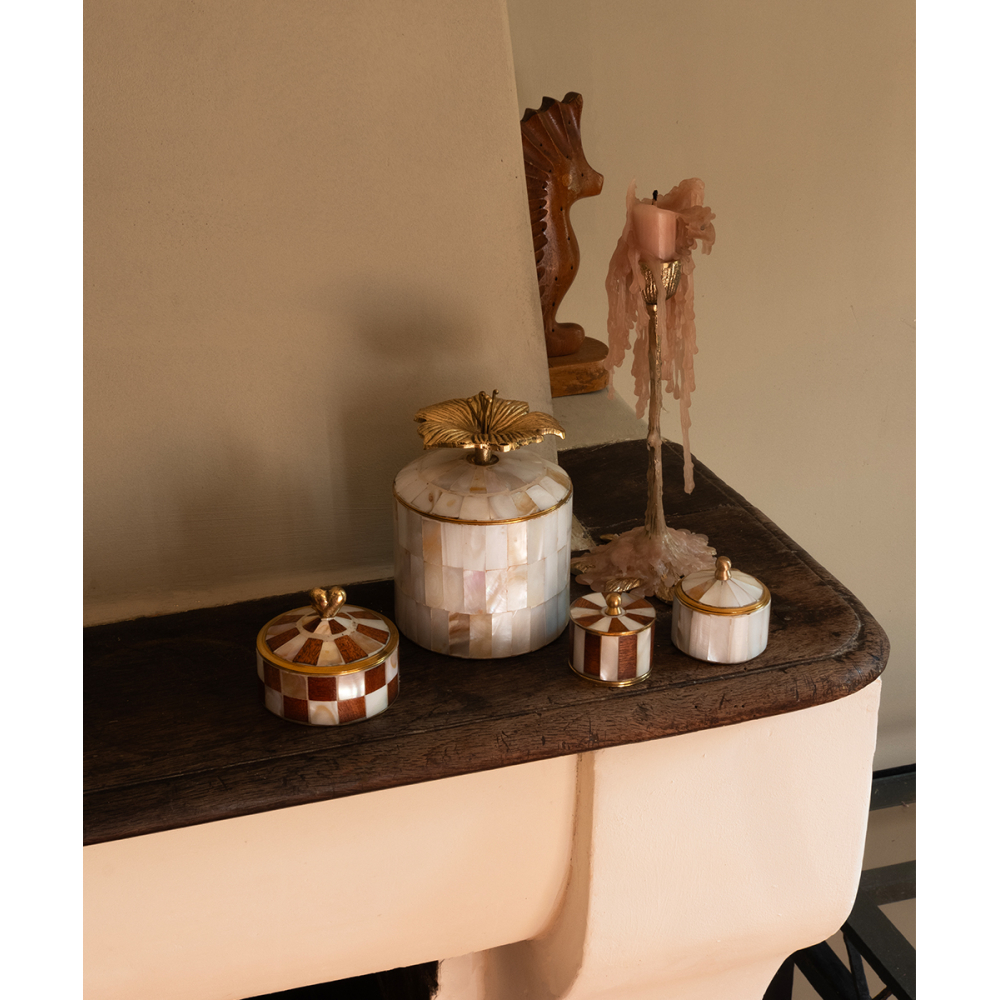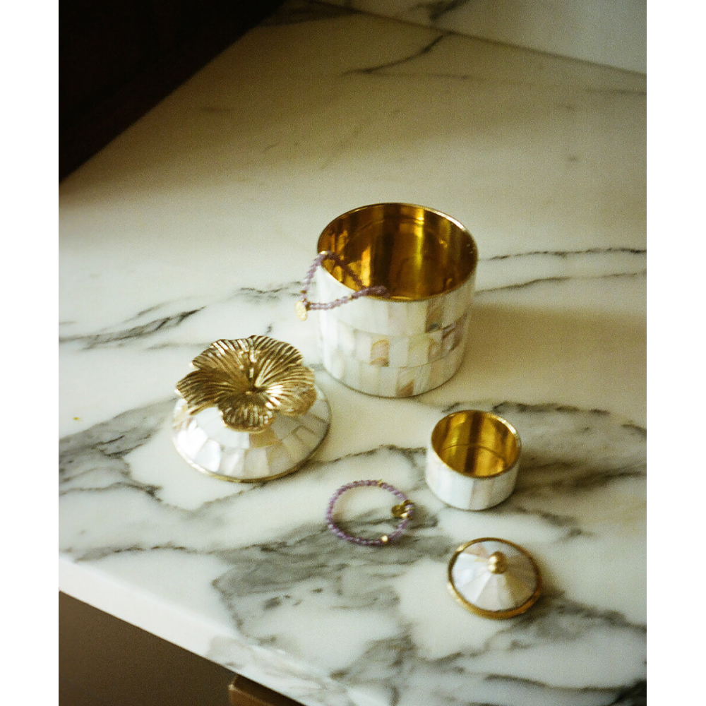 Bewaar je meest kostbare schatten in dit Hailey Hibiscus Circus Doosje. Deze doosjes van messing en schelp zijn handgemaakt