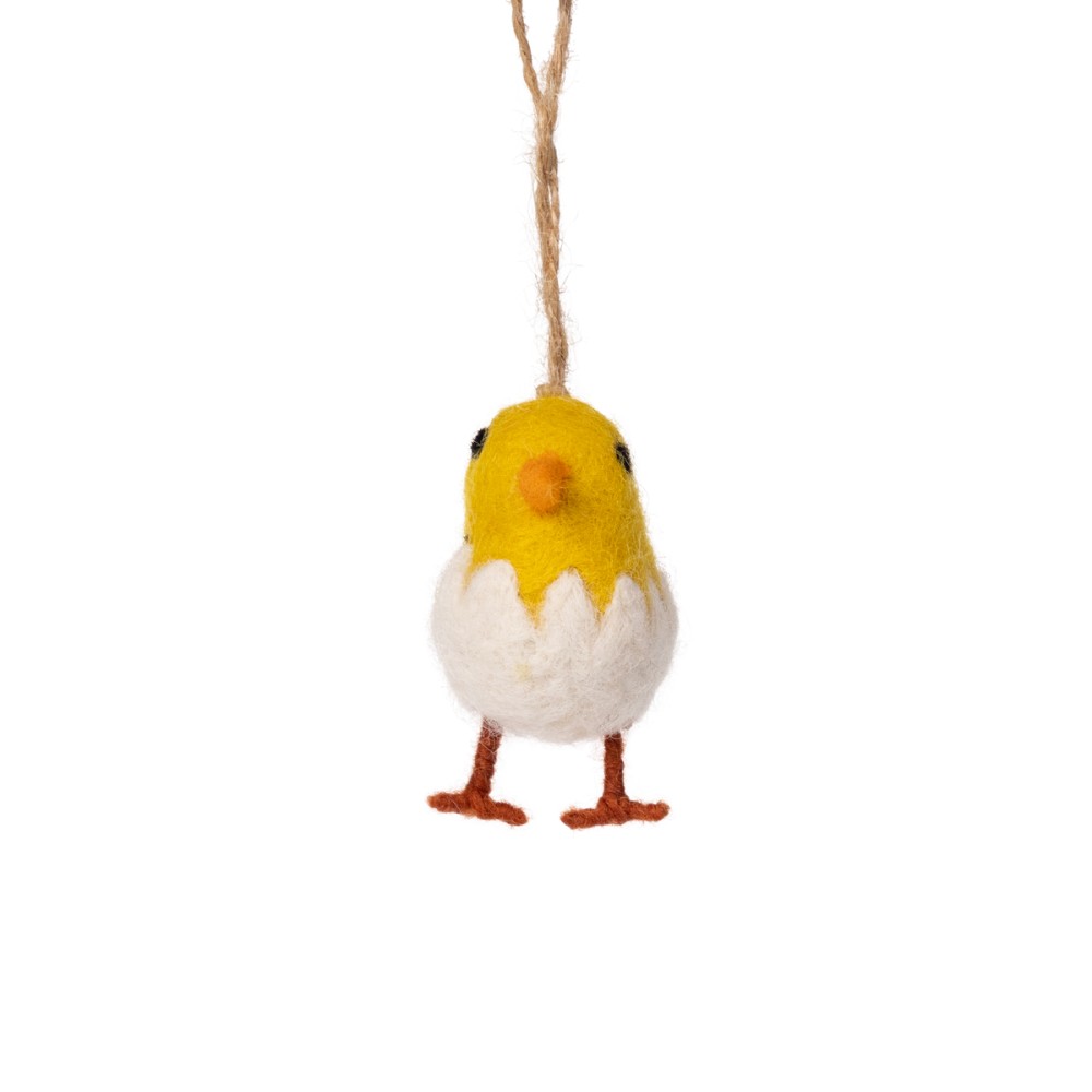 Hanger Paaskuiken van vilt. Dit schattige gele kuikentje, net uit het ei, is een perfecte decoratie voor Pasen.