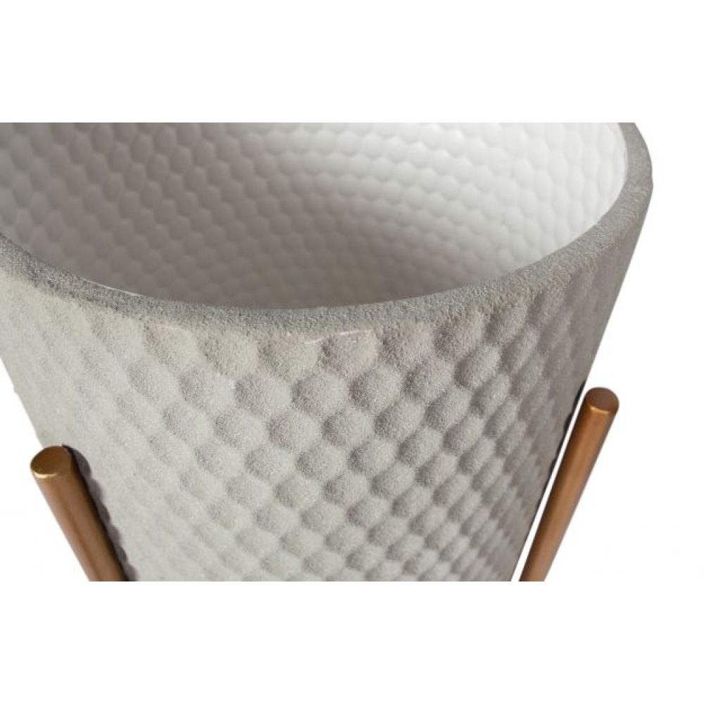 Ijzeren pot met betonfinish en goudkleurig ijzeren frame
