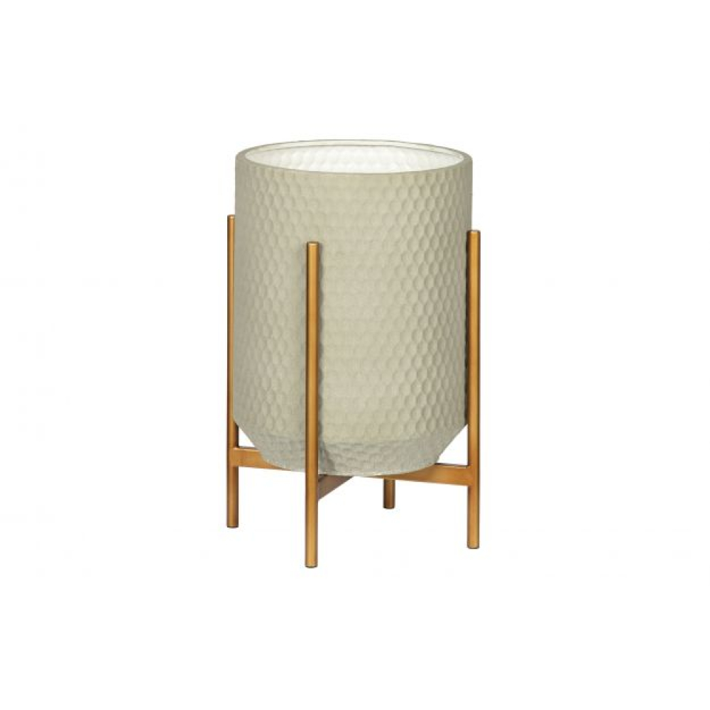 De plantenpot heeft een diameter van 13 cm en een hoogte van 39 cm. Het goudkleurige frame heeft een poothoogte van 41 cm, waarbij de diameter van het pootje 1,5 cm is. De hoogte van grond tot aan de onderkant van de pot is 14 cm.