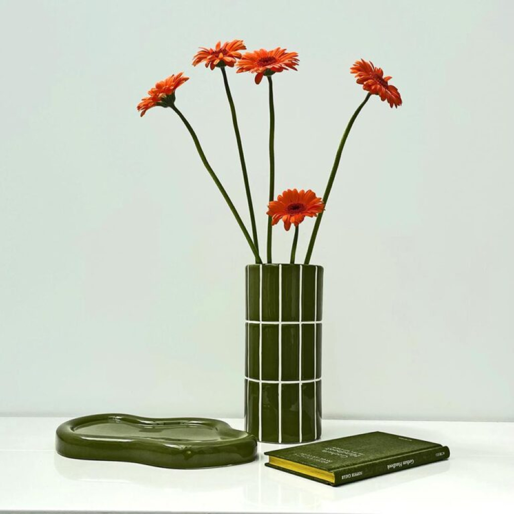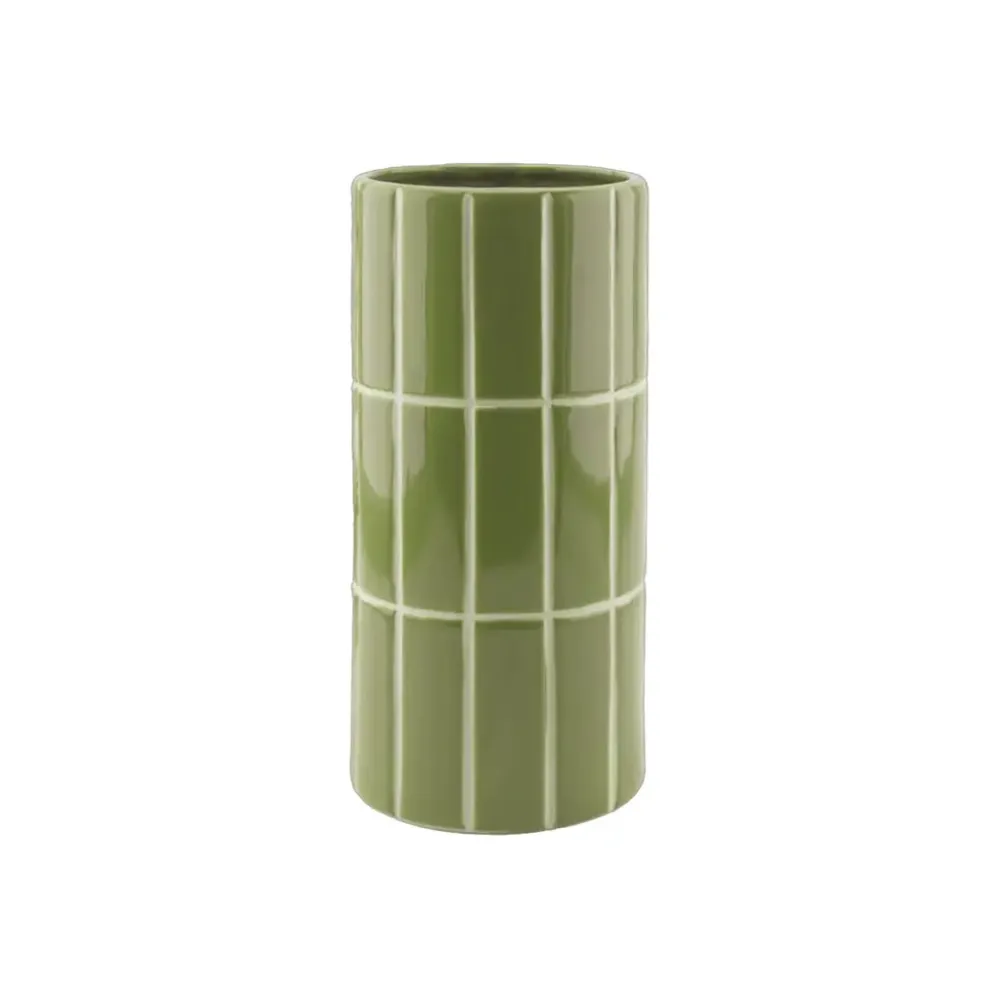 Ontdek onze unieke vaas met een verfijnd tegel-effect, perfect om een vleugje elegantie en originaliteit aan uw interieur toe te voegen.