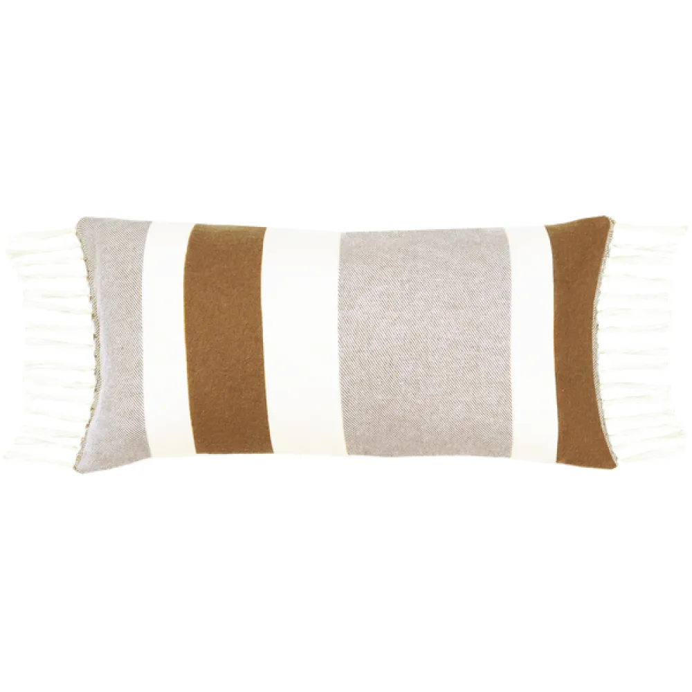 De warme camel tint in combinatie met ecru zorgt voor een natuurlijke, rustige basis die makkelijk te combineren is met andere kussens of plaids. Ideaal om een gezellige, eigentijdse zithoek te creëren met een vleugje boho-chic.