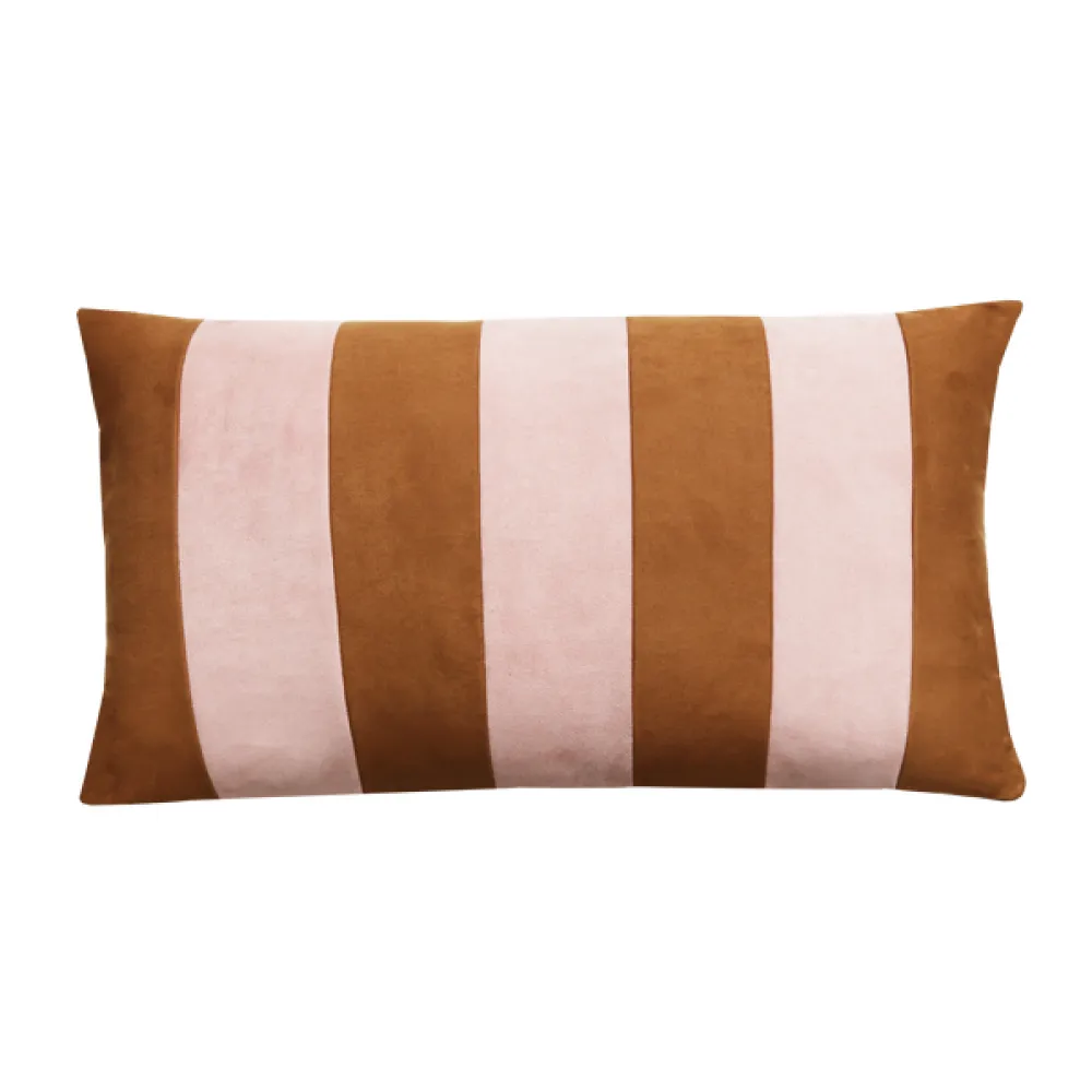 Model: kussen-suede-look-streep-mocha-mousse-roze-60x36cm- | Merk: THUIS MET MOON