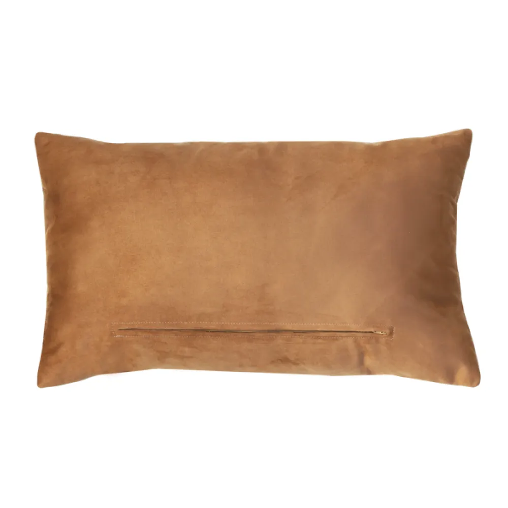 Het kussen van suède look met streep in mocha mousse roze (60x36cm) van Thuis met Moon voegt direct warmte en elegantie toe aan je interieur. Dit duurzame en handgemaakte kussen uit Nederland combineert een stoere uitstraling met zachte kleuren. Perfect te mixen en matchen met de andere varianten uit de collectie, voor een stijlvolle en eigentijdse sfeer in huis.