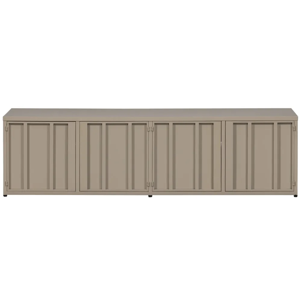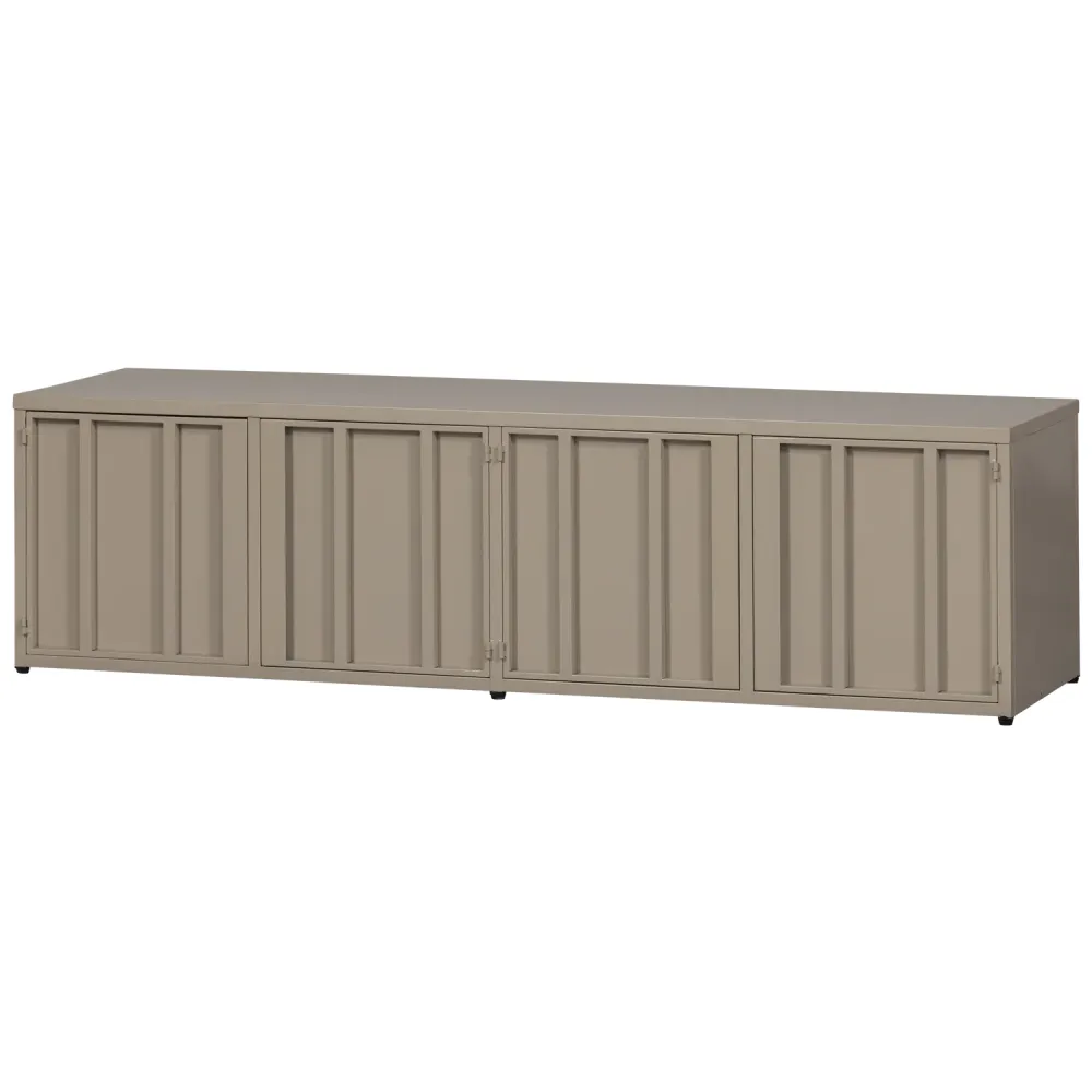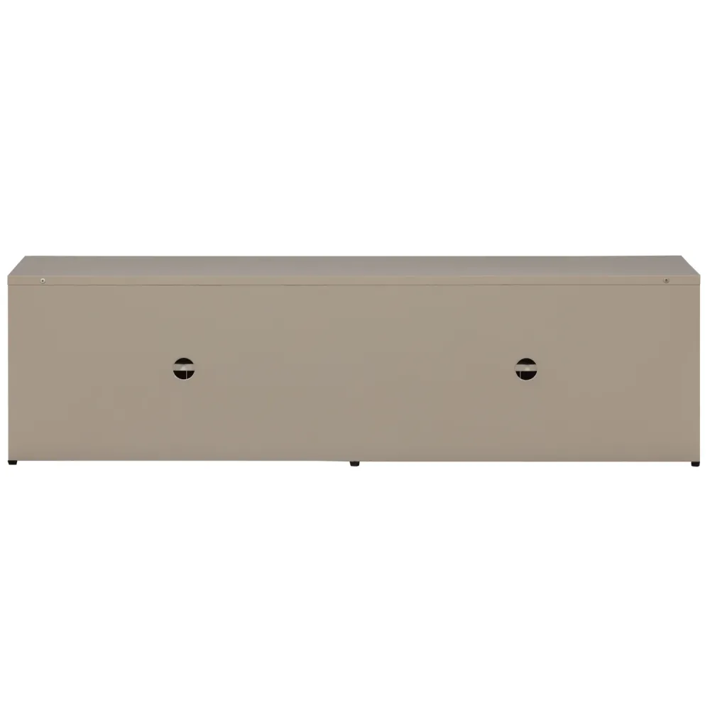 Plaats het Level TV-meubel tegen een lichte of neutrale muur en combineer met warme woonaccessoires zoals een geweven mand, houten fotolijstjes of een keramieken vaas. Voeg eventueel een stoer vloerkleed toe om de metalen accenten extra te laten spreken en het geheel samen te brengen.