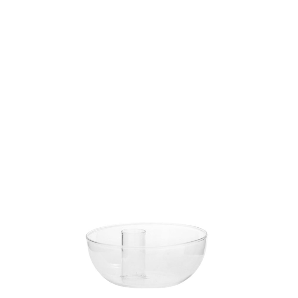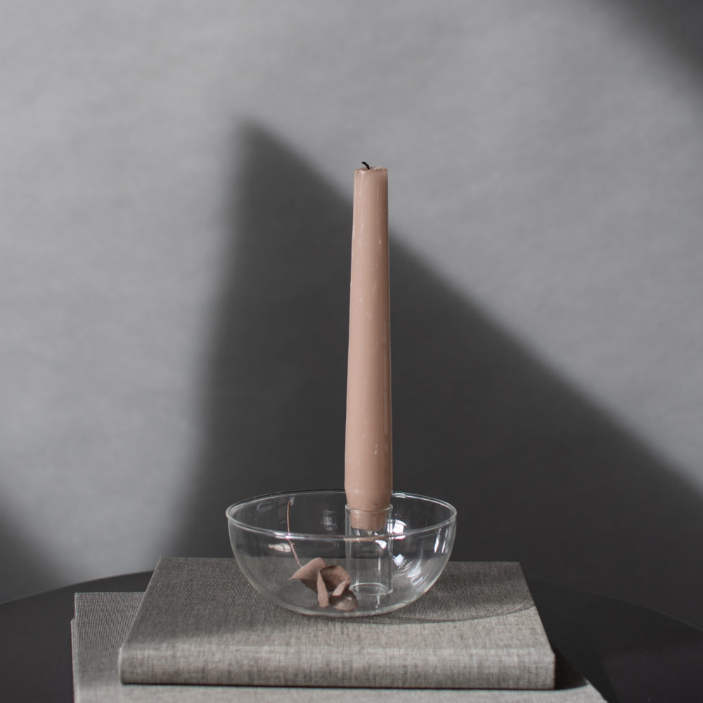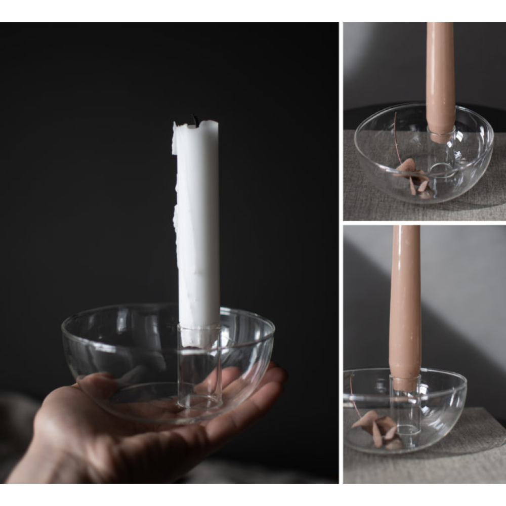 Glazen kaarsenhouder. De beroemde Lidatorp kandelaar gemaakt van glas. Eenvoudig in zijn ontwerp, gemakkelijk te versieren, gemakkelijk schoon te maken.