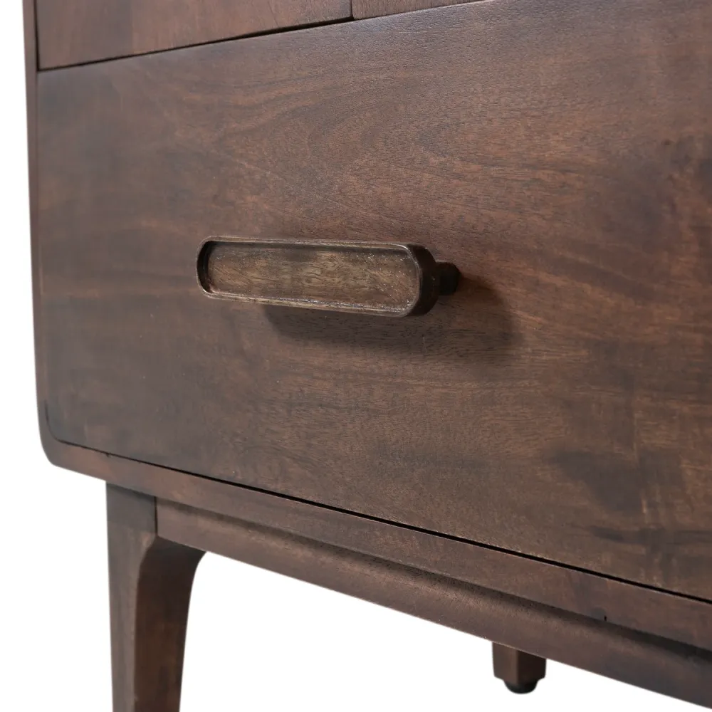 De WOOOD Liya Ladekast Mango Hout Donkerbruin is een stijlvolle en praktische kast die warmte en luxe toevoegt aan je interieur. Deze ladekast is vervaardigd uit massief mangohout met een diepe donkerbruine afwerking die de natuurlijke nerf prachtig benadrukt. Met meerdere ruime lades biedt de Liya volop opbergruimte voor kleding, linnengoed of andere spullen die je netjes wilt opbergen.
