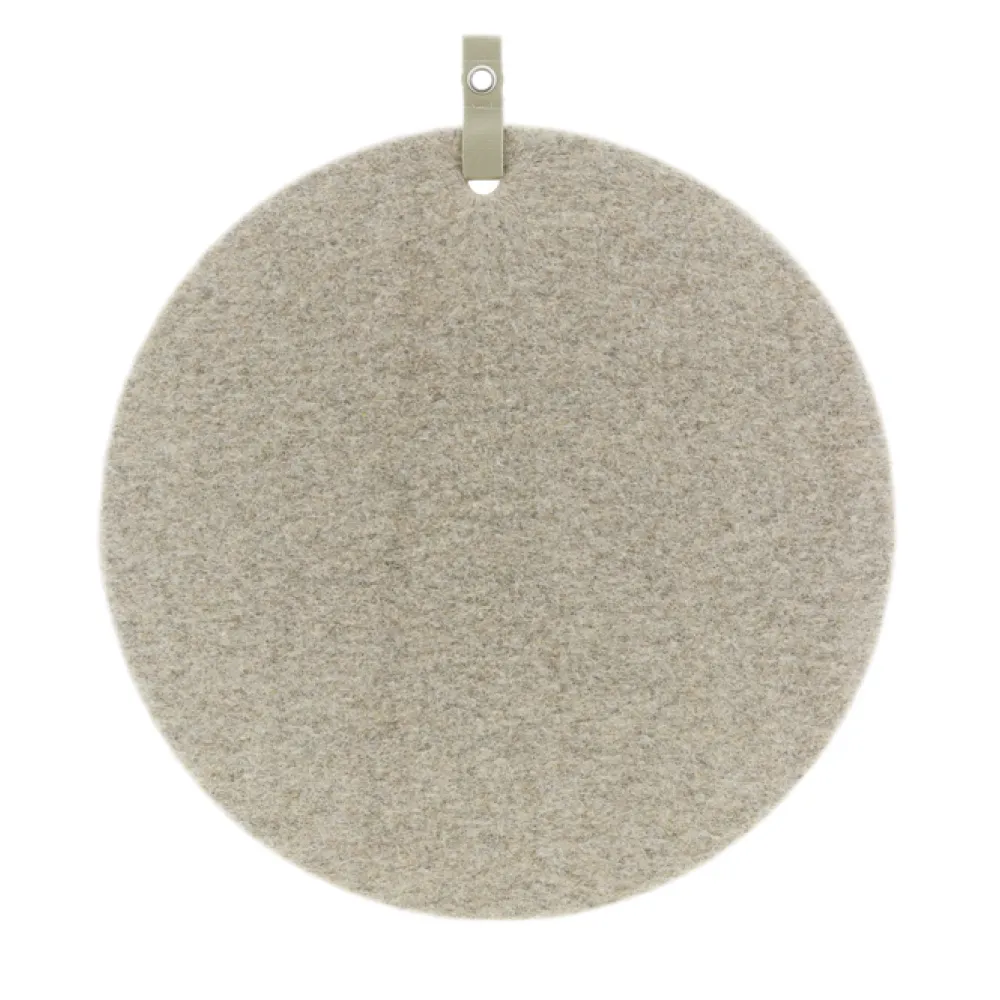 Het Memo prikbord van Thuis met Moon is dé stijlvolle manier om je mooiste foto’s, notities en inspiratie een plekje te geven. Dit ronde prikbord met een diameter van 60 cm is uitgevoerd in zandgrijs gemêleerd wolvilt, waardoor het een warme en natuurlijke uitstraling heeft. Perfect voor in de woonkamer, werkkamer of kinderkamer.