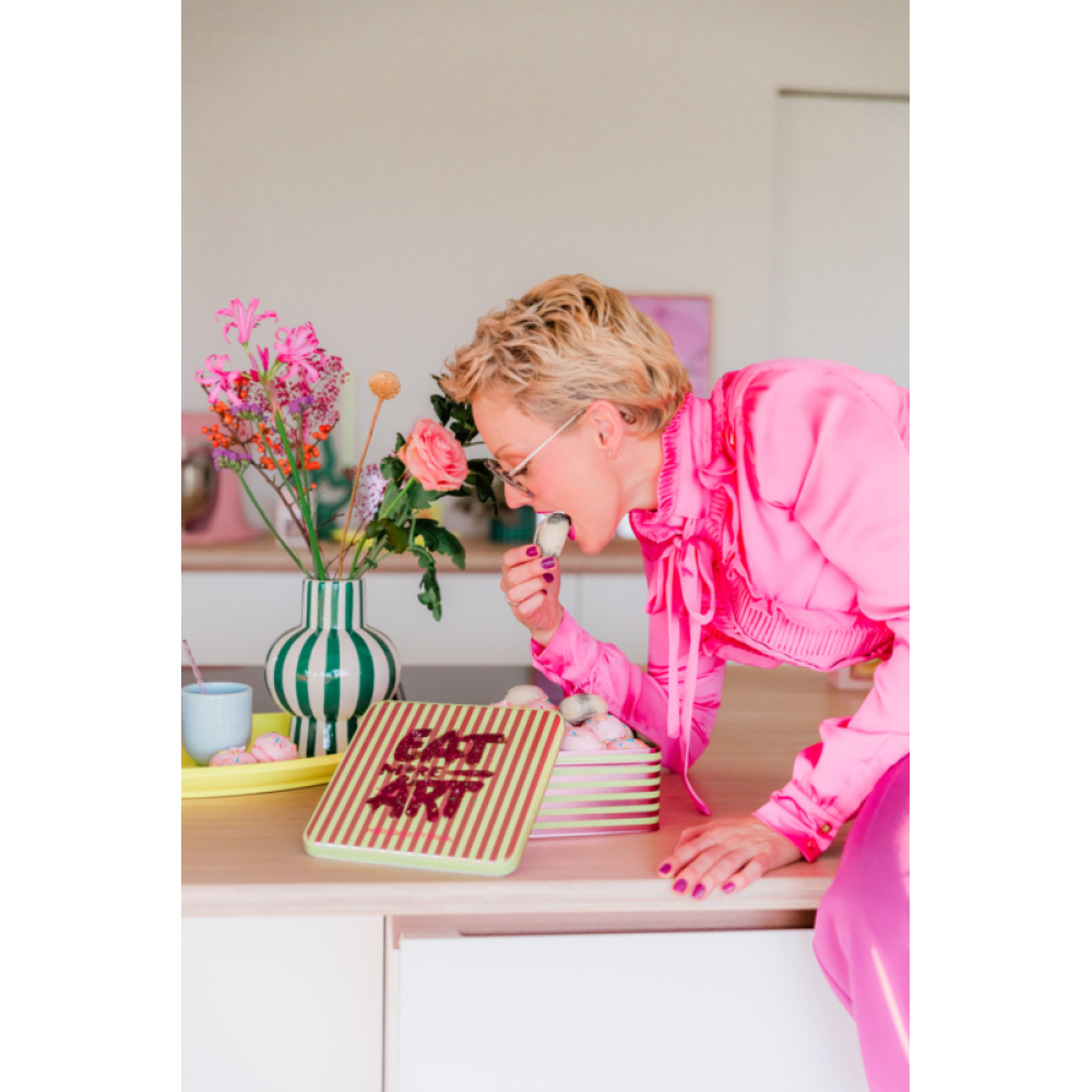 Dit prachtige blik kan niet ontbreken op je koffietafel. De combinatie van metalic roze en lime maken dit een echte eyecatcher.