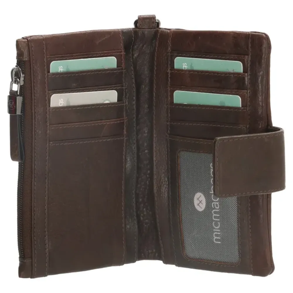 In deze zeer ruime portemonnee uit de Micmacbags Discover collectie geef je al je essentials een plekje. Het stevige maar soepele leer staat garant voor jarenlang gebruiksplezier. De portefeuille biedt RFID bescherming voor maar liefst 12 pasjes en heeft een ID venster voor je ID kaart of bijvoorbeeld foto’s. De portemonnee heeft aan de binnenzijde vier insteekvakken voor briefgeld of andere spulletjes en twee ritsvakken voor muntgeld. De portemonnee heeft een afneembaar polsbandje, waardoor je hem veilig met je meedraagt tijdens elk betaalavontuur!