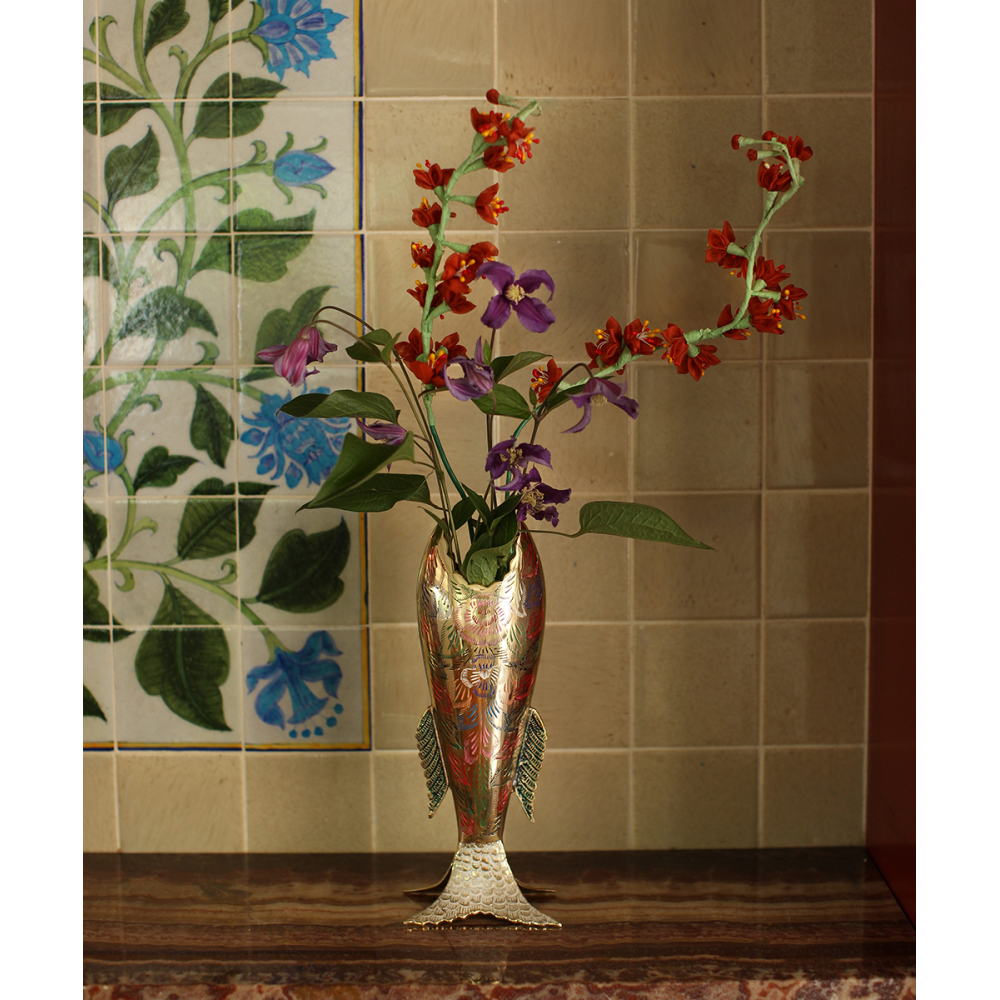 Onze vazen worden met de hand gemaakt in India. Vanwege hun handgemaakte karakter, kan het zijn dat er kleine verschillen zitten in de uitstraling van iedere vaas. Dat maakt ieder item uniek!