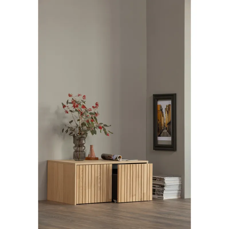 Stylingtip: Combineer de kistbank met zachte plaids en kussens voor een gezellige en uitnodigende sfeer. Perfect te combineren met andere meubels uit de New Gravure-serie voor een harmonieus interieur.