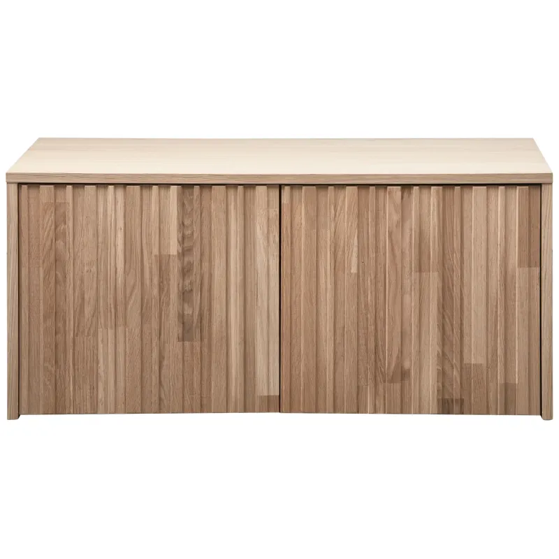De WOOOD New Gravure kistbank in eiken met blanke lak is een stijlvolle combinatie van functionaliteit en elegantie. Gemaakt van FSC-gecertificeerd eikenhout, straalt deze kistbank duurzaamheid en kwaliteit uit. De blanke lakafwerking laat de natuurlijke houtnerf subtiel zien, wat zorgt voor een lichte en warme uitstraling.