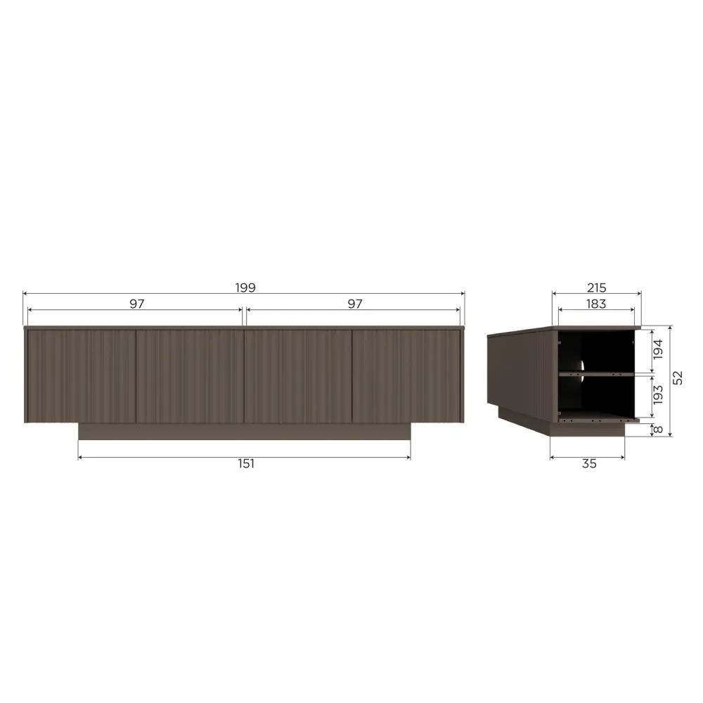Het WOOOD Nova TV meubel 200 cm in truffelbruin grenen is een stijlvolle toevoeging aan je interieur. De warme truffelbruine kleur accentueert de natuurlijke houtnerf, waardoor het meubel meteen sfeer en diepte in de ruimte brengt. De strakke vormgeving zorgt voor een rustige basis, terwijl het royale formaat voldoende plek biedt voor je televisie én al je apparatuur, mandjes of accessoires.