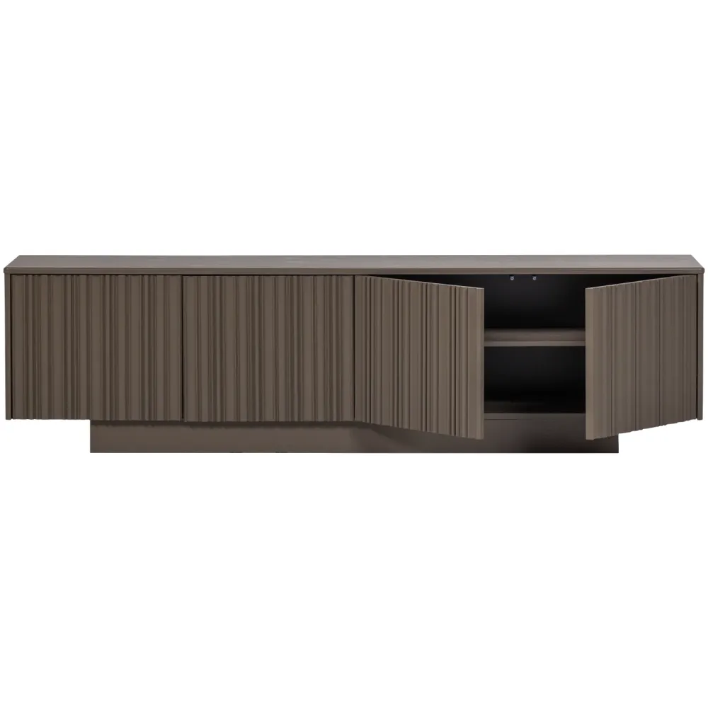 Combineer dit TV-meubel met zachte tinten zoals crème, zand of warm beige voor een rustige, elegante sfeer. Een paar organisch gevormde vazen of een mooie set kaarsen bovenop het meubel brengen meteen extra warmte. Ook leuk: werk met mandjes of voorraadkistjes onderin om functionaliteit en sfeer te combineren.