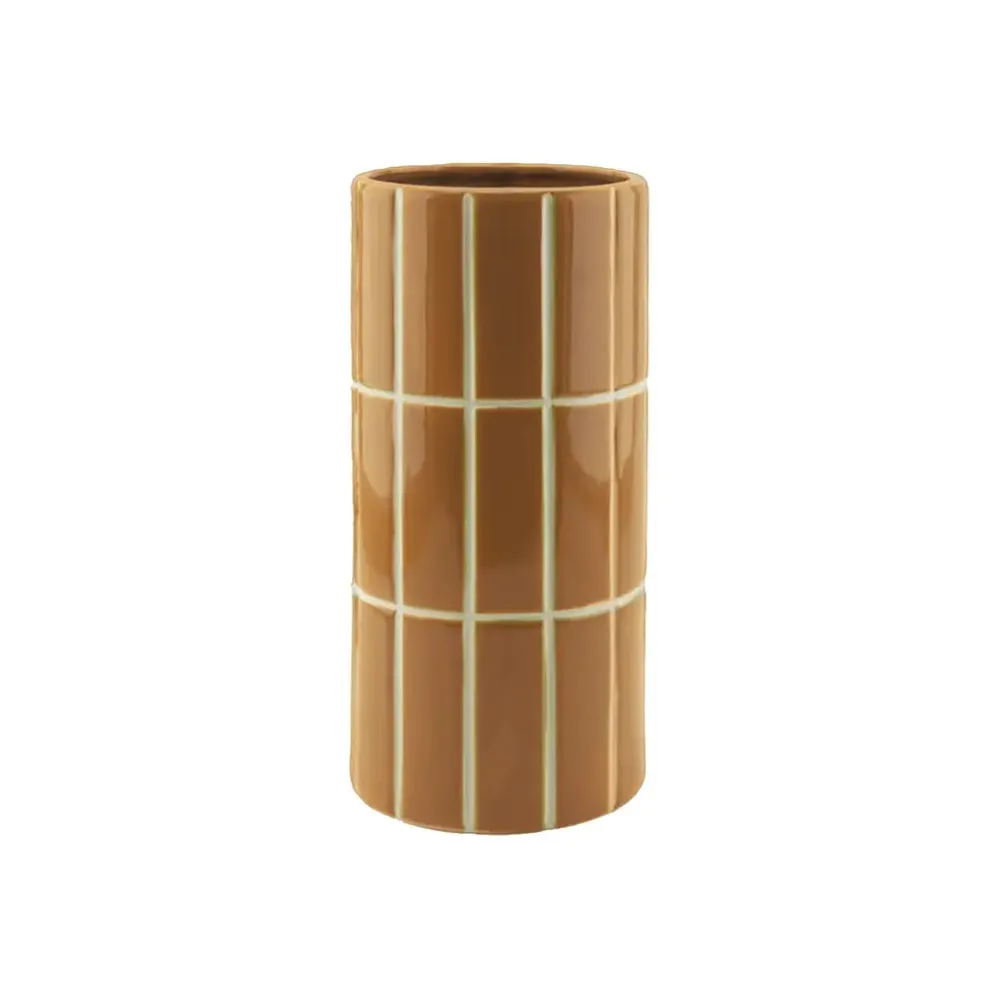 Ontdek deze unieke vaas met een verfijnd tegel-effect, perfect om een vleugje elegantie en originaliteit aan uw interieur toe te voegen.