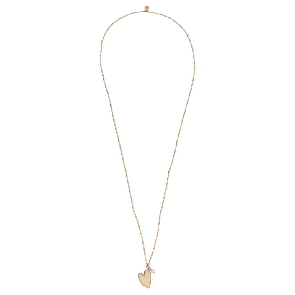 De Paradise Rozenkwarts Goudkleurige Ketting van A Beautiful Story bestaat uit glaskralen met een goudkleurig hart symbool.