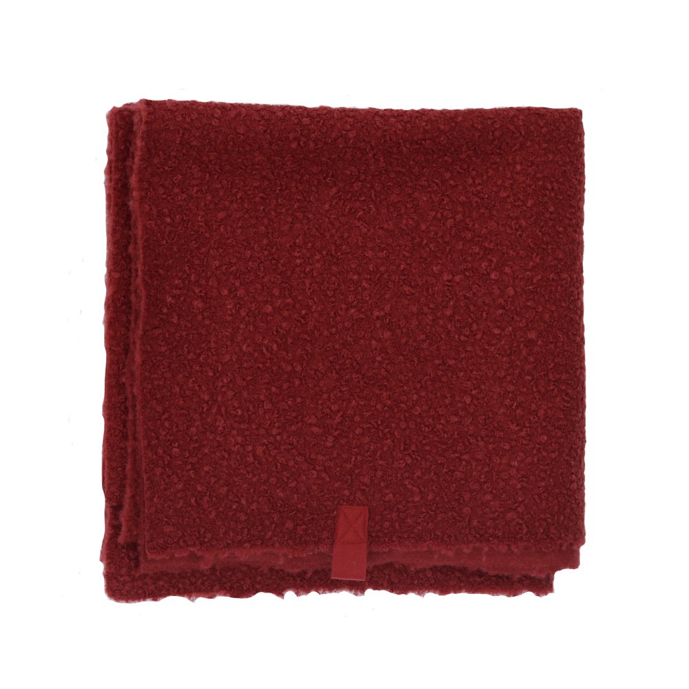 Het plaid is gemaakt van mooie grove bouclé stof, waardoor het plaid een mooie ‘teddy-achtige” structuur heeft. Het plaid heeft aan de achterzijde een gladdere wolachtige structuur, waardoor er een mooi contrast ontstaat tussen de voor en achterzijde. De met de hand uitgekamde randen zorgen voor een mooie fluffy afwerking. De lus geeft een stoer accent aan het plaid.