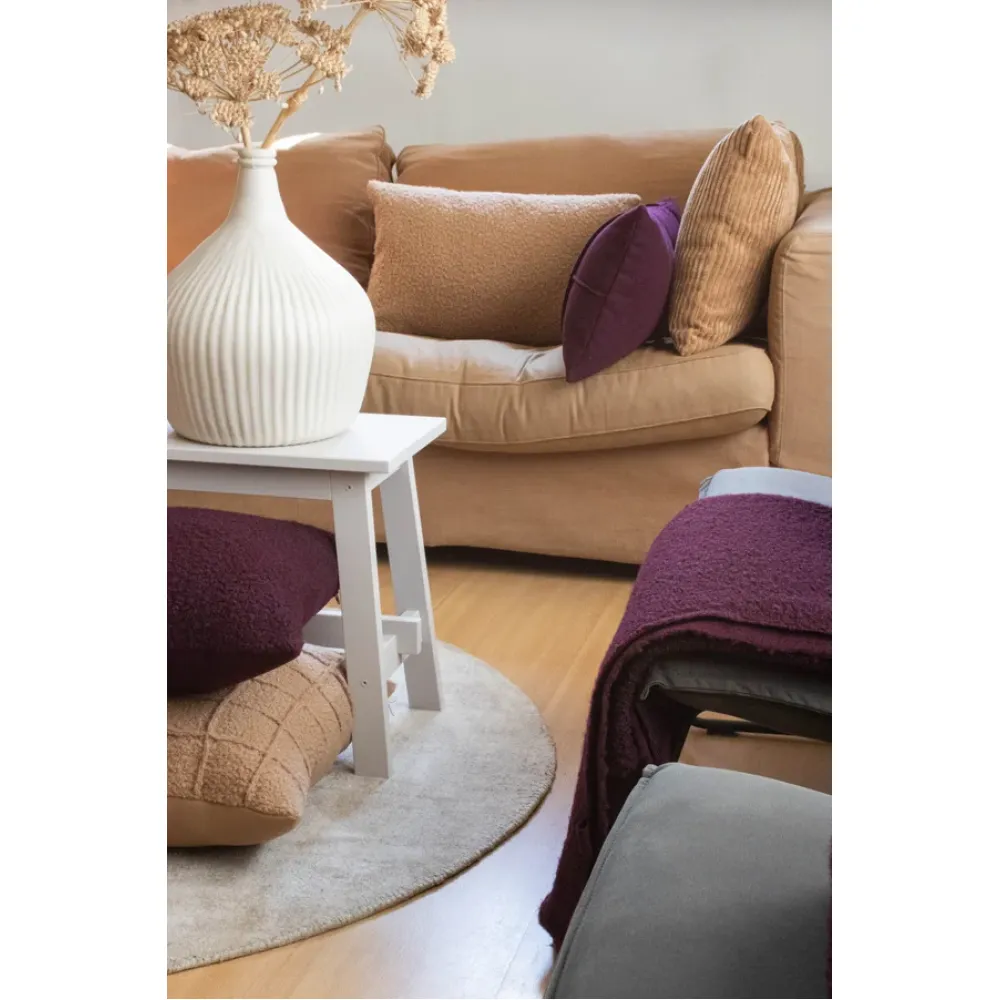 Met een royaal formaat van 150x170cm is deze plaid niet alleen functioneel, maar ook een echte sfeermaker. Combineer hem met sierkussens in bouclé of suède look voor een harmonieus geheel.