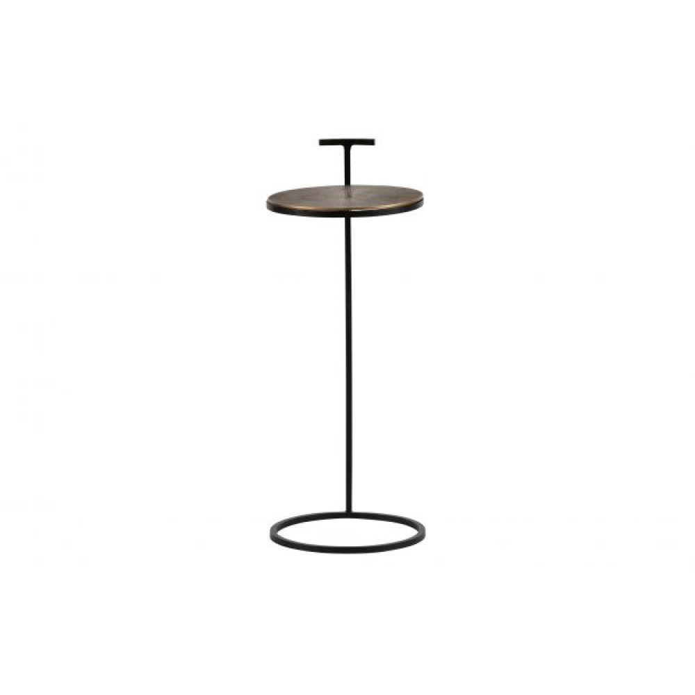 De tafel (hxb) 64xØ26 cm is gemaakt van een combinatie van ijzer en aluminium en heeft een antique brass afwerking. Het blad is 1,5 cm dik, de hoogte van de grond tot het blad is 56 cm. Het blad heeft een Ø van 25 cm. Tafel Position heeft een max. draaggewicht van 2 kg.