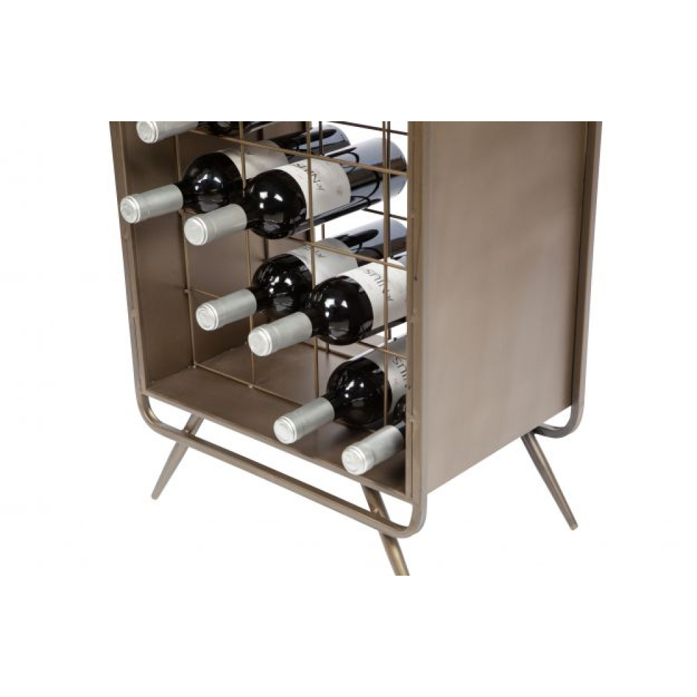 Elegante wijnkast vervaardigd uit staal met een donkere antique brass afwerking. Bij de echte wijnliefhebber kan deze kast zeker niet ontbreken! De kast biedt zowel ruimte aan wijnflessen als wijnglazen en heeft daarbij ook nog twee opbergplanken. Dit maakt hem een echte all-rounder.