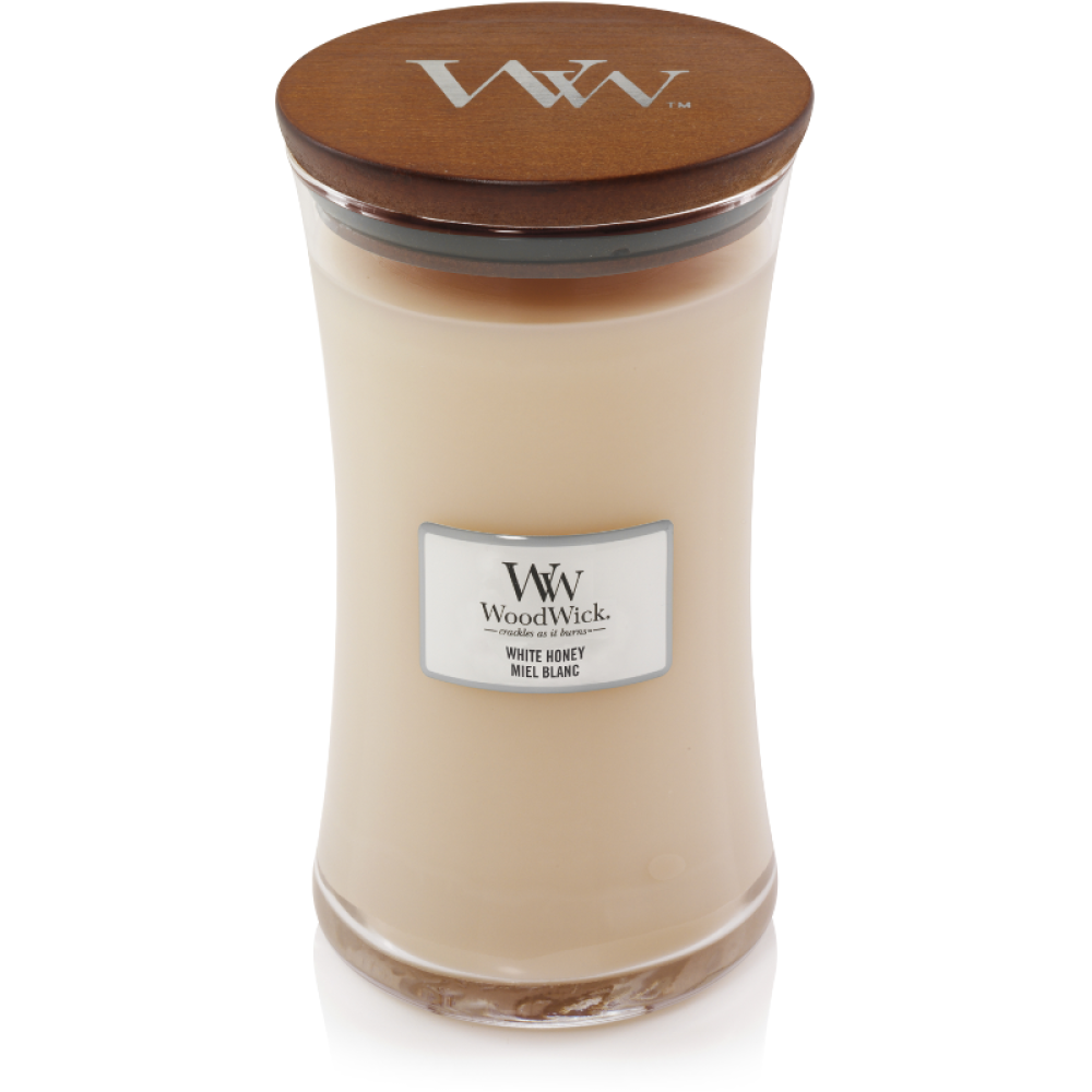 Woodwick White Honey brengt de heerlijke zoete geur van gekonfijte sinaasappelbloesem met laagjes vanilleorchidee en geroosterde toffee in je huis.