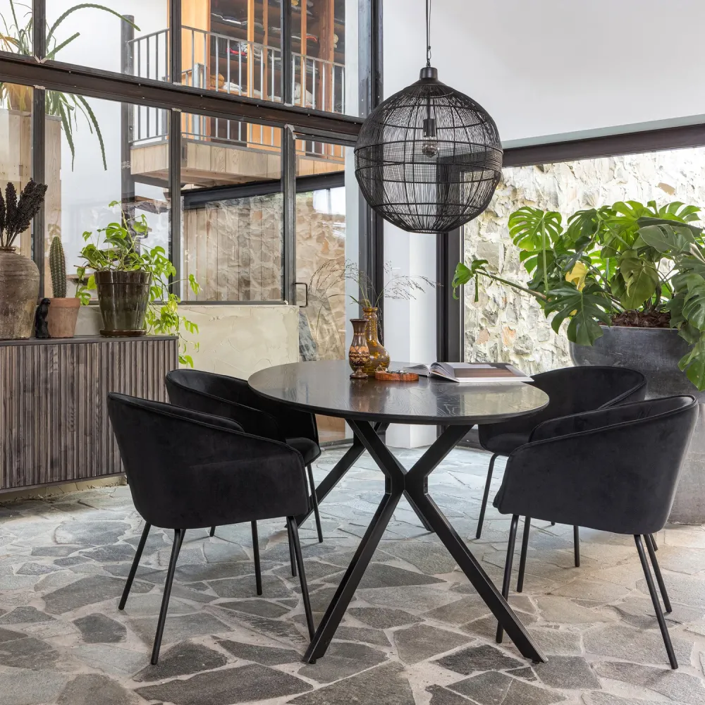 Stylingtip: Combineer de Bruno eettafel met stoelen van WOOOD in contrasterende kleuren of materialen zoals velours of ribstof voor een warme, eigentijdse eetkamer. Voeg een houten dienblad of een vaas met verse bloemen toe voor een sfeervol geheel.