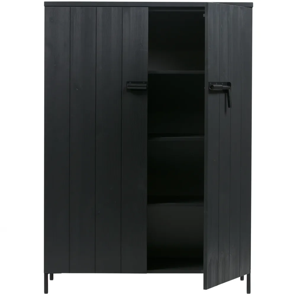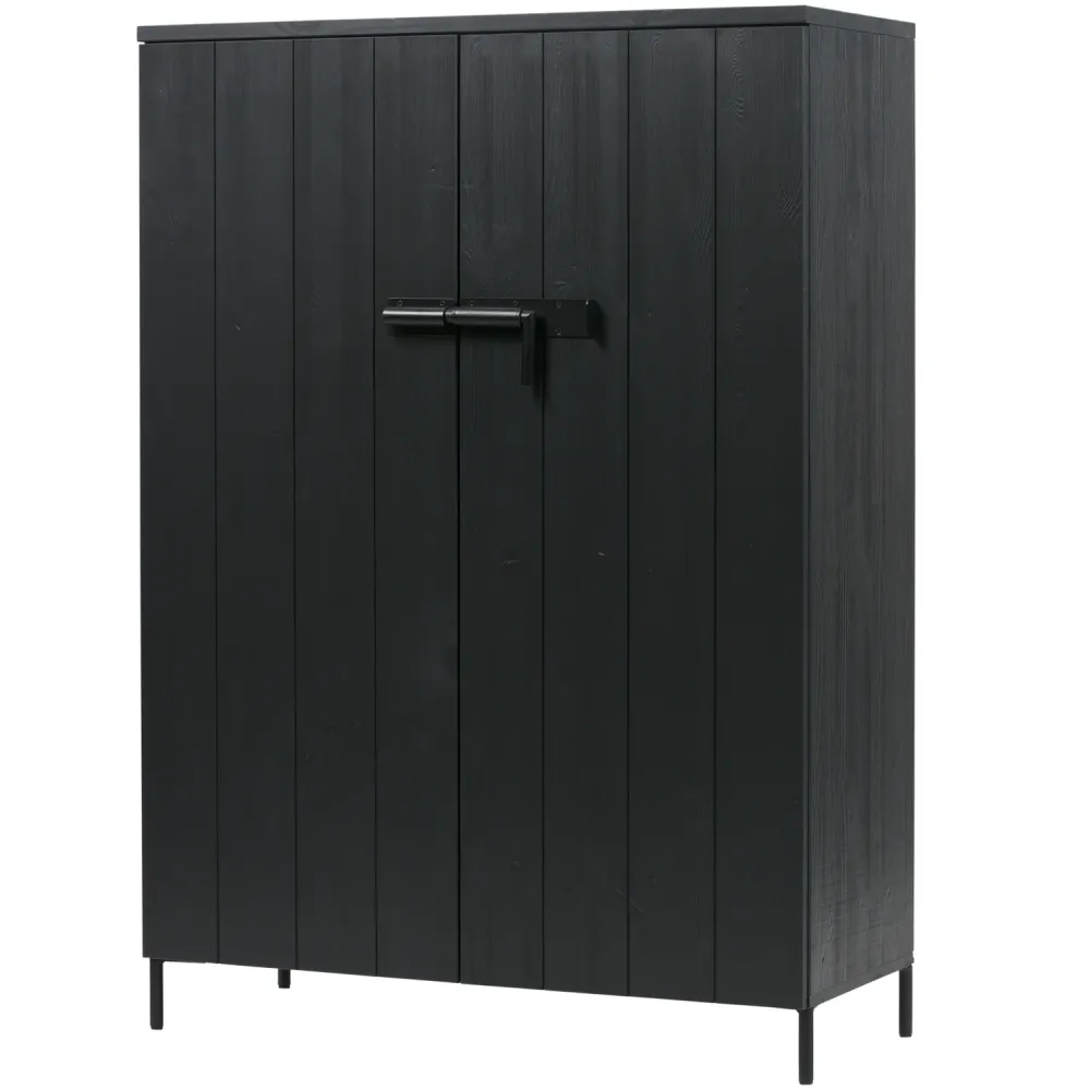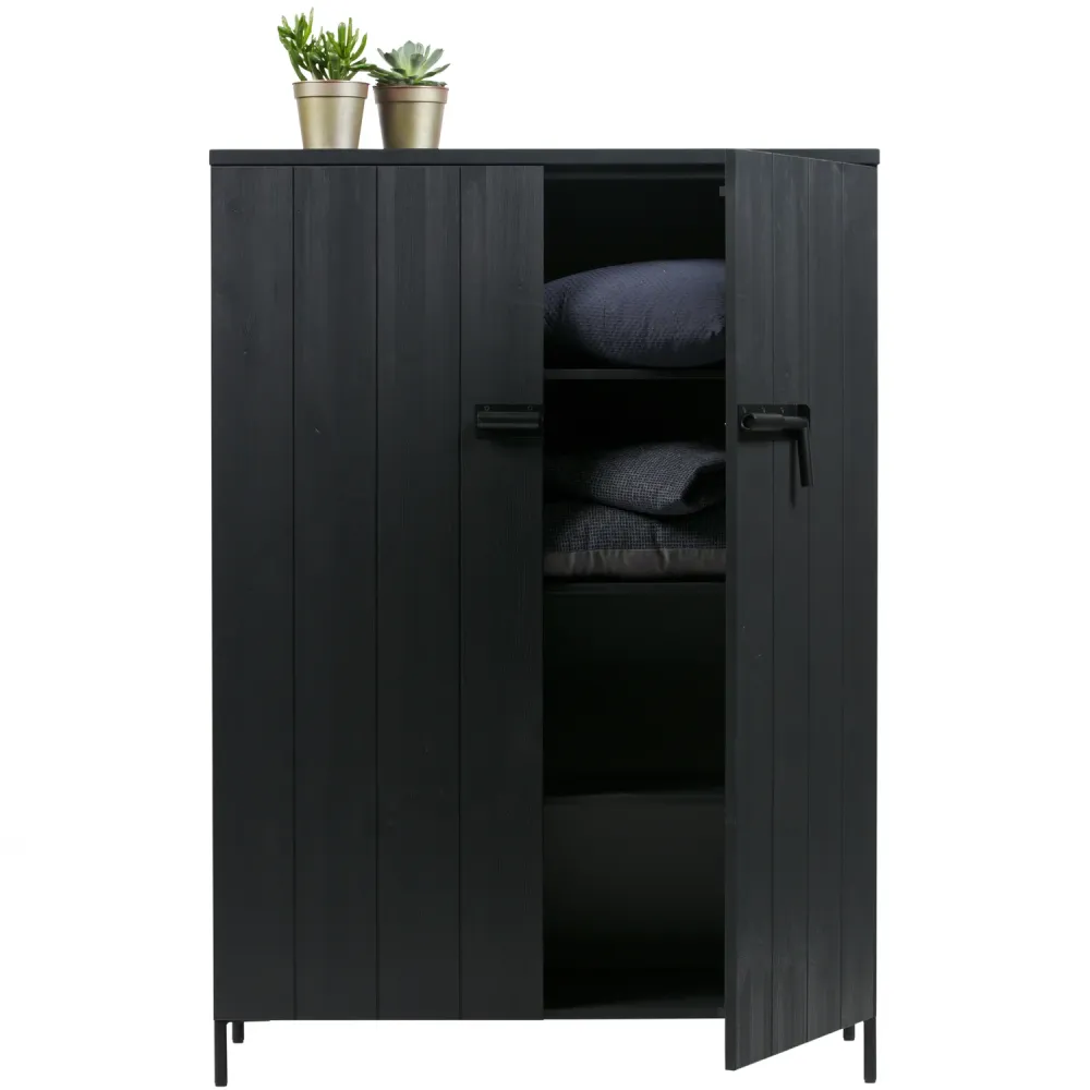 De WOOOD Bruut 2-deurs kast in diepzwart geborsteld grenenhout is een stoere en stijlvolle opberger voor iedere ruimte. Het robuuste hout en de subtiele, geborstelde afwerking geven de kast karakter en een luxe uitstraling.