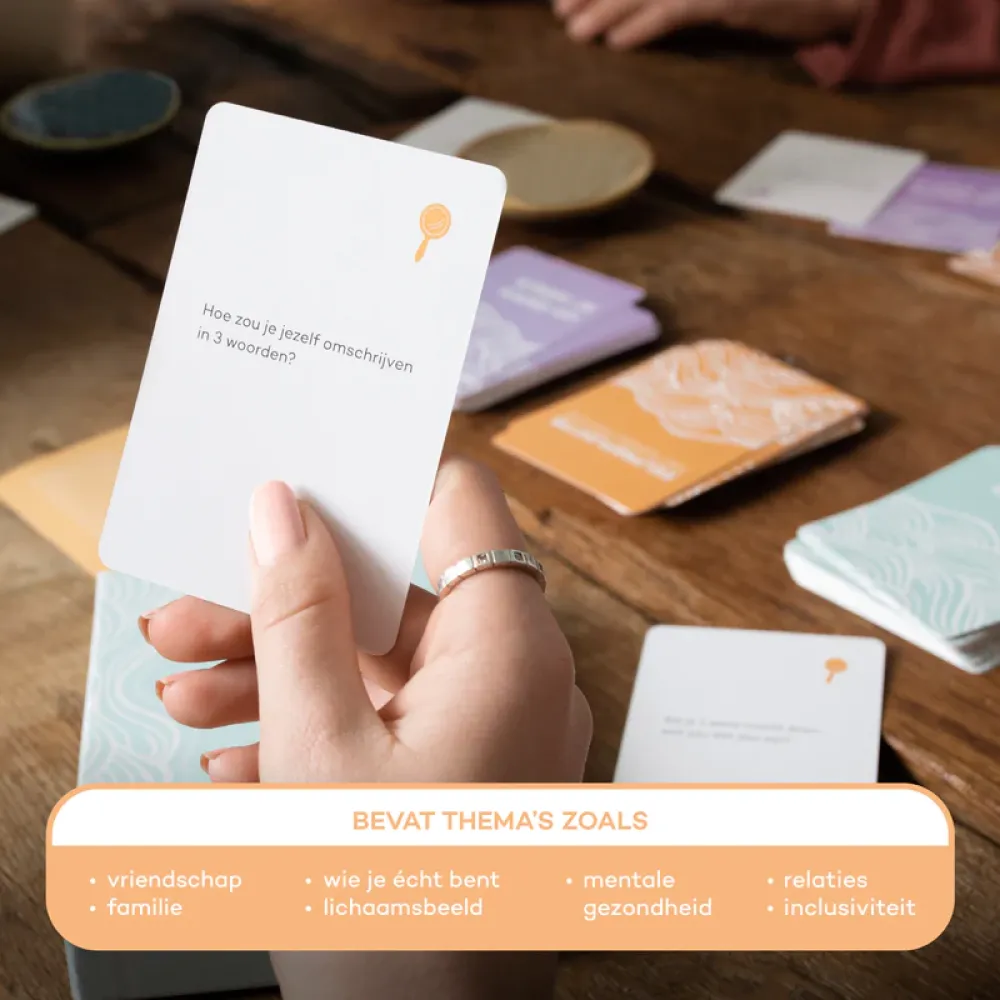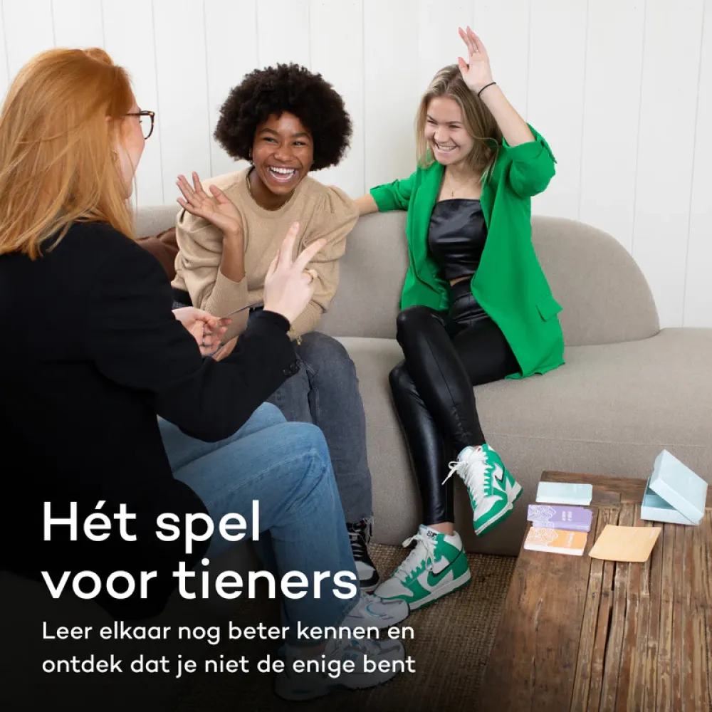 Aanbevolen minimum leeftijd: 12+. Geweldig om te spelen met vrienden, ouders of klasgenoten! Dit spel is in samenwerking met een tiener, psycholoog en leraar gemaakt.